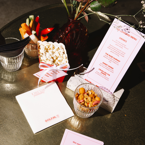 Rond 18.30 uur druppelden de mannen binnen. Zij werden ontvangen aan de bar met een drankje én een korte peptalk. Golf is tenslotte een gentleman’s sport — en zo gedraag je je ook op een date. Respect, aandacht en plezier stonden centraal. Daarna volgde uitleg over het spelconcept van de avond: