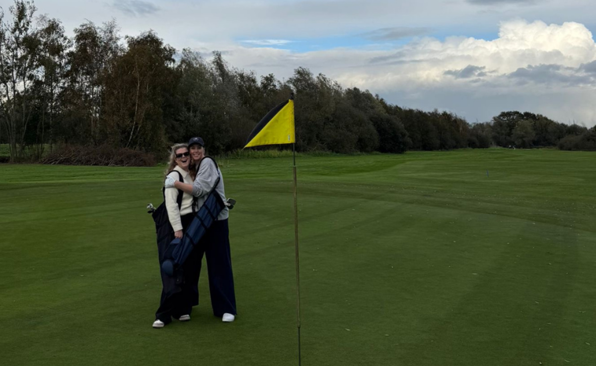 Ze begon met lessen bij de Hoge Dijk, samen met twee vriendinnen en een leuke groep vrouwen uit de branche. En precies dát maakte dit keer het verschil. Want golf werd geen verplicht sportmoment, maar juist een afspraak om naar uit te kijken. Haar eerste 9 holes op een zomeravond staan haar nog helder bij. “Ik dacht echt: dit is zó leuk. Zo stil, zo rustig. Ik was totaal niet met mijn telefoon bezig.”