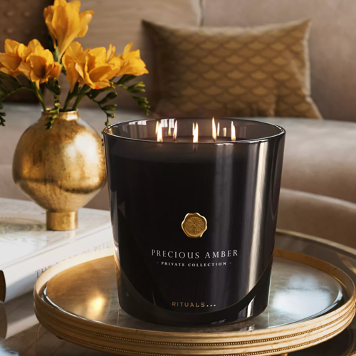 Warm, elegant en net zo gelaagd als een goede ronde golf. Een geur die altijd werkt. - Rituals – Precious Amber XL Geurkaars